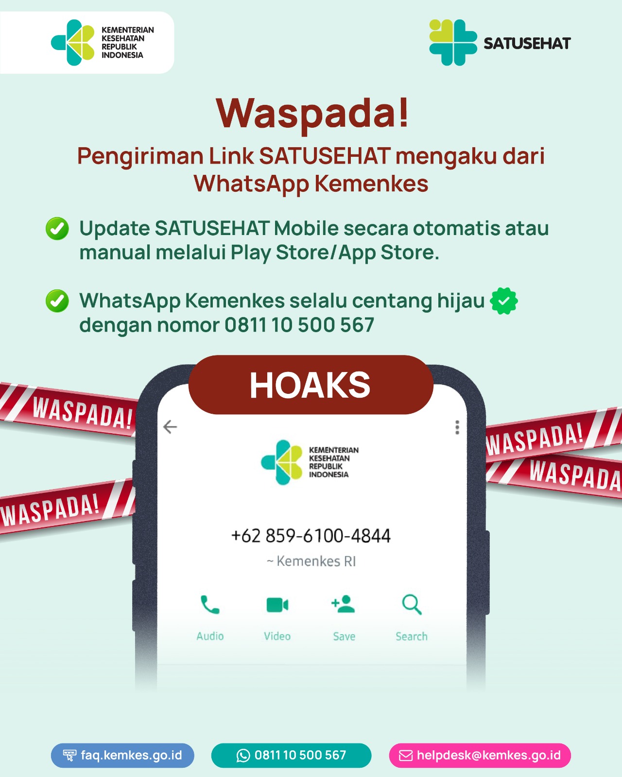 Jakarta, 13 Maret 2023 Kementerian Kesehatan RI baru-baru ini menerima laporan penipuan melalui nomor WhatsApp yang berisi link update SATUSEHAT …
